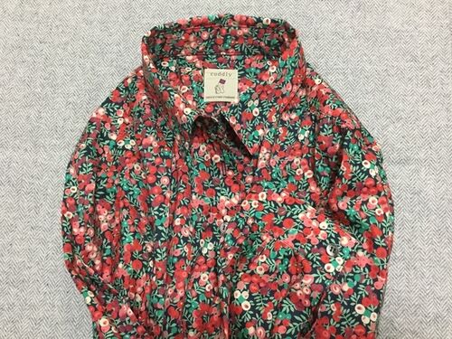 こんにちは、さびこ (@sabineko325)です。今年初のワンピースを作りました!オリジナルパターンのギャザーシャツワンピース、4枚目です。生地はとってもお気に入りのリバティ、赤系のウィルトシャーです♡