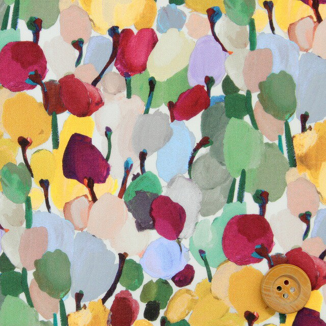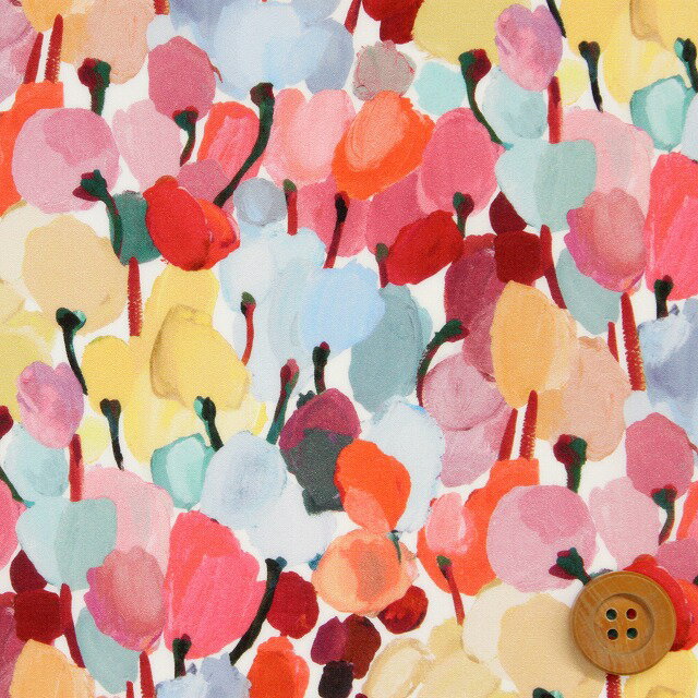鮮やかなチューリップが美しい、初夏らしいカラーリングの生地です。